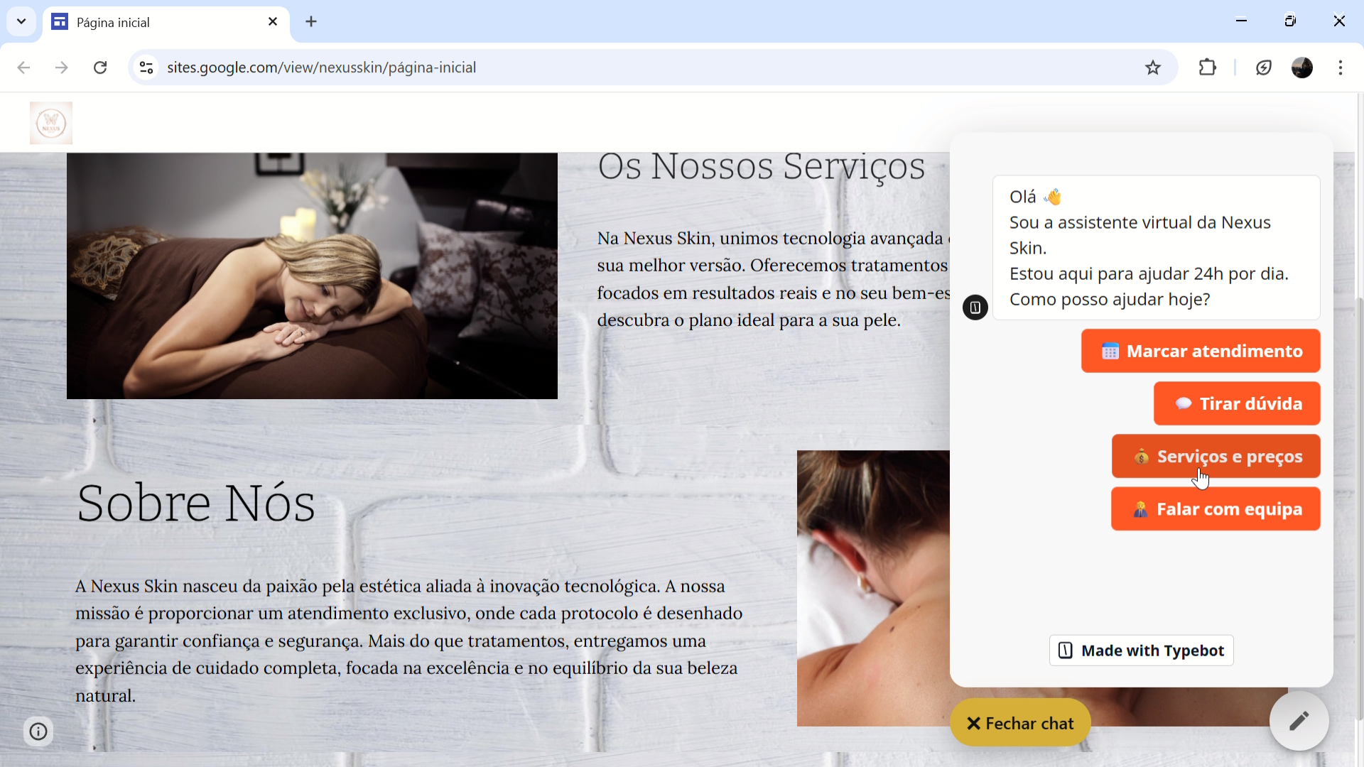 Implementamos um assistente inteligente que responde automaticamente a perguntas sobre tratamentos, preços e horários.